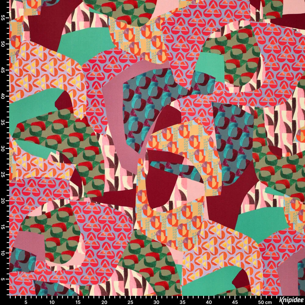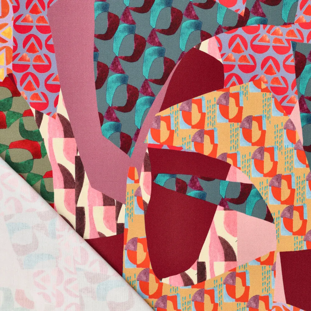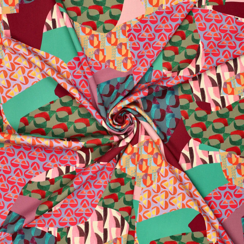 23014 Geometric Patchwork Viscose Satin